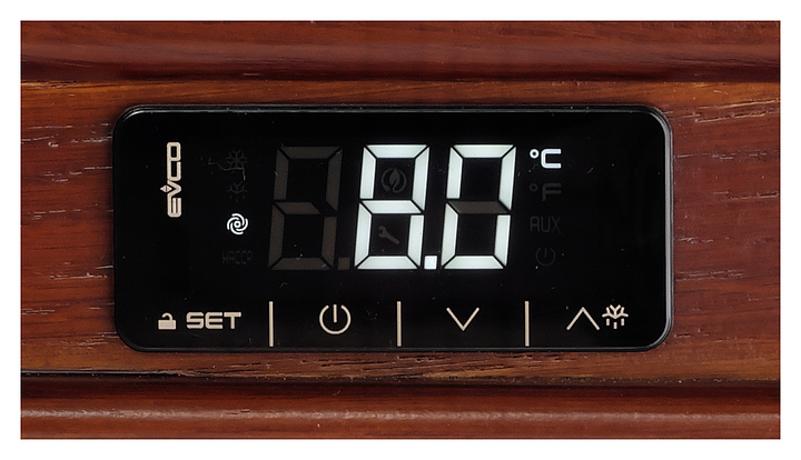 Винный шкаф POZIS ШВД-78 создает особые условия для хранения вин, сохраняя их первозданный вид, вкус и аромат. Тонированный стеклопакет на двери предотвращает проникновение солнечных лучей, ухудшающих качество вина, особая циркуляция воздуха поддерживает нужный уровень влажности, а деревянные полки снижают уровень вибрации от компрессора. Для удобства пользования цифровой панелью дисплей, отображающий температуру, располагается над дверью в зоне постоянной видимости. Особенности: