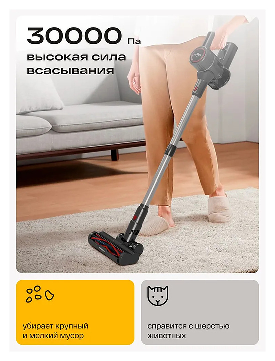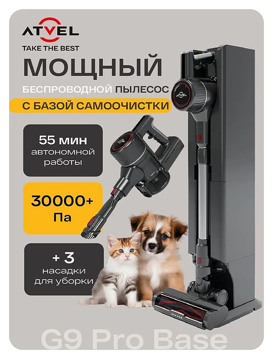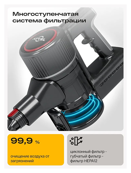 Пылесос вертикальный беспроводной Atvel Upright G9 Pro Base серый