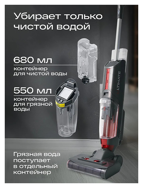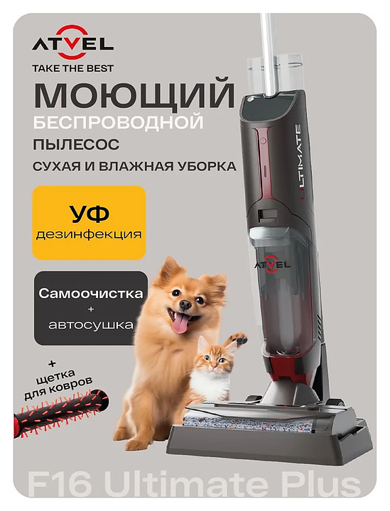 Пылесос вертикальный беспроводной моющий Atvel F16 ULTIMATE Plus идеально подходит семьям, ценящим гигиену и простоту, он справляется с остатками пищи, жирными следами и даже старыми загрязнениями, продлевая свежесть напольных покрытий. Модель оснащена вертикальной парковкой и регулировкой мощности. Корпус изготовлен из прочного пластика, трубка цельная из пластика. В комплект поставки входят основной корпус, бак для чистой воды, бак для грязной воды, ручка, литий-ионный аккумулятор, роликовая щетка, адаптер питания, инструмент для очистки, щетка для очистки НЕРА фильтра, зарядная станция, руководство пользователя. Особенности: