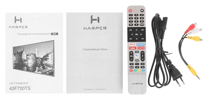 Телевизор HARPER 43F720TS предназначен для приема и воспроизведения видео и аудио контента с различных ресурсов таких как телевещание, Интернет, дополнительное подключаемое оборудование и физические носители в домашних условиях, гостиницах, офисах, холлах и кабинетах различных учреждений. Прибор оснащен плоским монитором, акустической стереосистемой с 2 встроенными динамиками, кабелем питания с вилкой, встроенным блоком питания и основным выключателем, пульт – кнопочной клавиатурой. Кожух прибора выполнен из ударопрочного полимера с матовой поверхностью черного цвета, рамка экрана и опоры с поверхностью черного цвета, корпус пульта – из пластика.