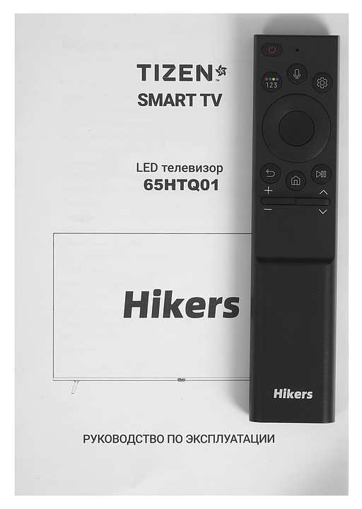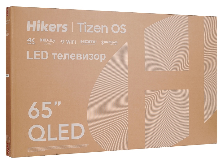 Телевизор Hikers 65HTQ01 предназначен для приема и воспроизведения видео и аудио контента с различных ресурсов таких как телевещание, Интернет, дополнительное подключаемое оборудование и физические носители в домашних условиях, гостиницах, офисах, холлах и кабинетах различных учреждений. Прибор оснащен плоским монитором, акустической стереосистемой с 2 встроенными динамиками, встроенным блоком питания, кабелем питания с вилкой и основным выключателем, пульт – кнопочной клавиатурой. Кожух прибора выполнен из ударопрочного полимера с матовой поверхностью черного цвета, рамка экрана с поверхностью черного цвета, фронтальная панель с поверхностью темно-серого оттенка, опоры с поверхностью оттенка темно-серый металлик, корпус пульта – из черного пластика.