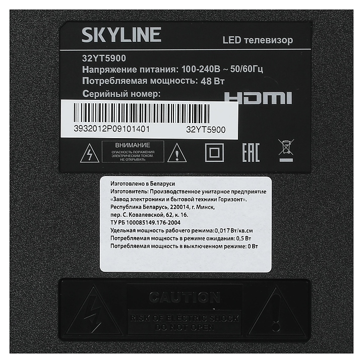 Телевизор Skyline 32YT5900 предназначен для приема и воспроизведения видео и аудио контента с различных ресурсов таких как телевещание, дополнительное подключаемое оборудование и физические носители в домашних условиях, гостиницах, офисах, холлах и кабинетах различных учреждений. Прибор оснащен плоским монитором, акустической стереосистемой с 2 встроенными динамиками, встроенным блоком питания, кабелем питания с вилкой и основным выключателем, пульт – кнопочной клавиатурой. Кожух прибора выполнен из ударопрочного полимера с матовой поверхностью черного цвета, рамка и подставка – из пластика с поверхностью ченого цвета, корпус пульта – из черного пластика.