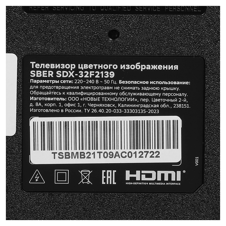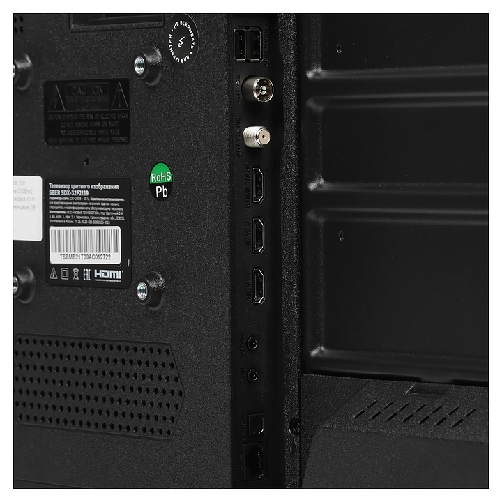 Телевизор Sber SDX-32F2139 предназначен для приема и воспроизведения видео и аудио контента с различных ресурсов таких как телевещание, Интернет, дополнительное подключаемое оборудование и физические носители в домашних условиях, гостиницах, офисах, холлах и кабинетах различных учреждений. Прибор оснащен плоским широкоформатным монитором, акустической стереосистемой с 2 встроенными динамиками, встроенным блоком питания, кабелем питания с вилкой и основным выключателем, пульт – кнопочной клавиатурой. Кожух прибора выполнен из ударопрочного полимера с матовой поверхностью черного цвета, рамка экрана и подставка – из пластика с поверхностью черного цвета, корпус пульта – из черного пластика.