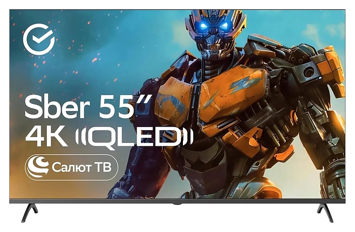 Телевизор Sber SDX-55UQ5235 предназначен для приема и воспроизведения видео и аудио контента с различных ресурсов таких как телевещание, Интернет, дополнительное подключаемое оборудование и физические носители в домашних условиях, гостиницах, офисах, холлах и кабинетах различных учреждений. Прибор оснащен плоским широкоформатным монитором, акустической стереосистемой с 2 встроенными динамиками, встроенным блоком питания, кабелем питания с вилкой и основным выключателем, пульт – кнопочной клавиатурой. Кожух прибора выполнен из ударопрочного полимера с матовой поверхностью черного цвета, фронтальная рамка – из металла, подставка с поверхностью серого оттенка, корпус пульта – из черного пластика.