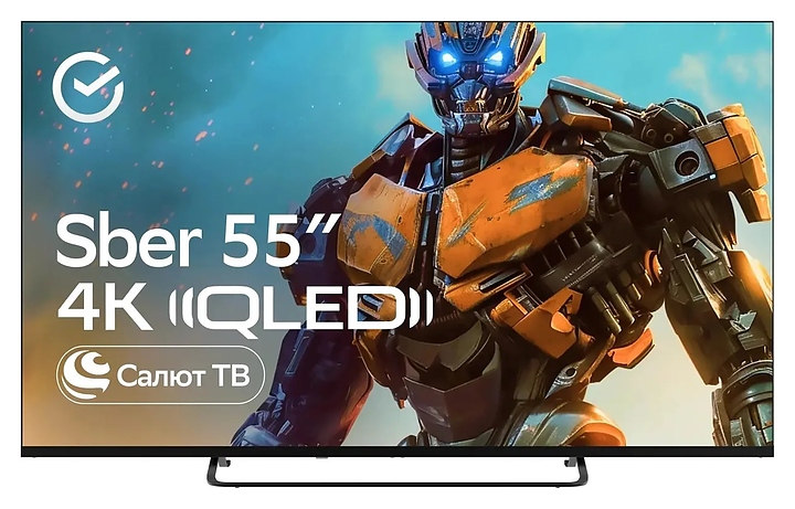 Телевизор Sber SDX-55UQ5236 предназначен для приема и воспроизведения видео и аудио контента с различных ресурсов таких как телевещание, Интернет, дополнительное подключаемое оборудование и физические носители в домашних условиях, гостиницах, офисах, холлах и кабинетах различных учреждений. Прибор оснащен плоским широкоформатным монитором, акустической стереосистемой с 2 встроенными динамиками, встроенным блоком питания, кабелем питания с вилкой и основным выключателем, пульт – кнопочной клавиатурой. Кожух прибора выполнен из ударопрочного полимера с матовой поверхностью черного цвета, рамка экрана и подставка – из пластика с поверхностью черного цвета, корпус пульта – из черного пластика.