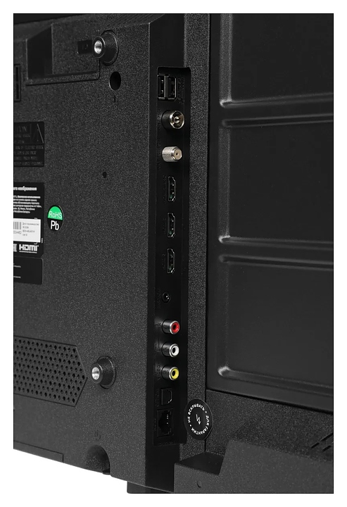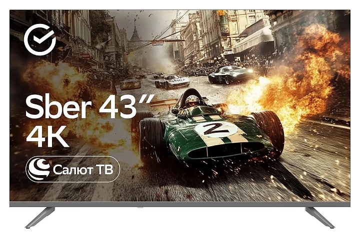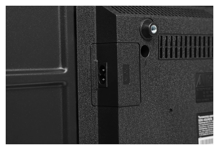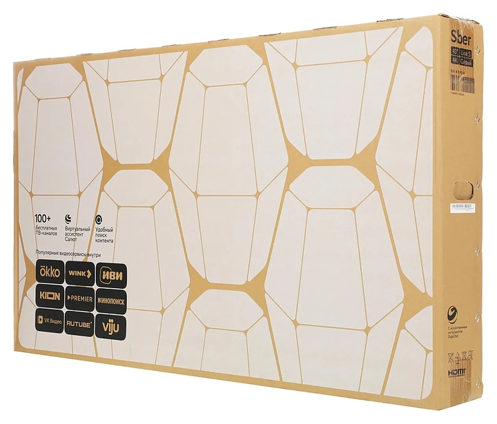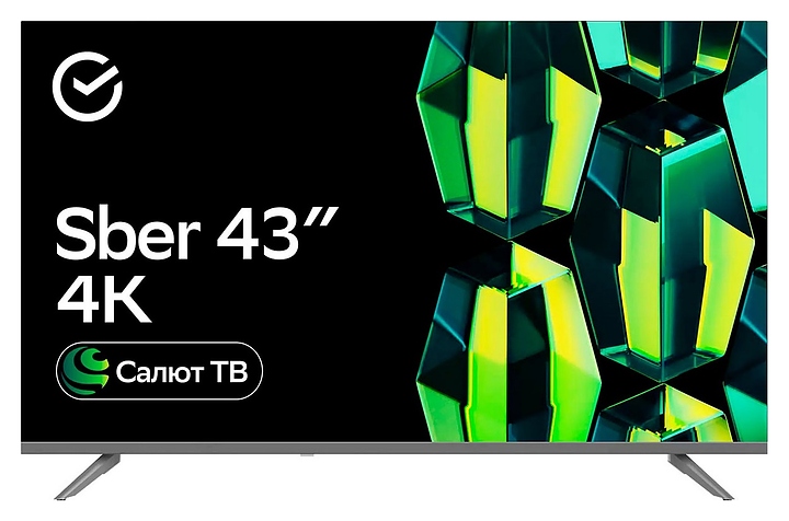 Телевизор Sber SDX-43U4014 предназначен для приема и воспроизведения видео и аудио контента с различных ресурсов таких как телевещание, Интернет, дополнительное подключаемое оборудование и физические носители в домашних условиях, гостиницах, офисах, холлах и кабинетах различных учреждений. Прибор оснащен плоским широкоформатным монитором, акустической стереосистемой с 2 встроенными динамиками, встроенным блоком питания, кабелем питания с вилкой и основным выключателем, пульт – кнопочной клавиатурой. Кожух прибора выполнен из ударопрочного полимера с матовой поверхностью черного цвета, рамка экрана и подставка – из пластика с поверхностью серебристого оттенка, корпус пульта – из черного пластика.