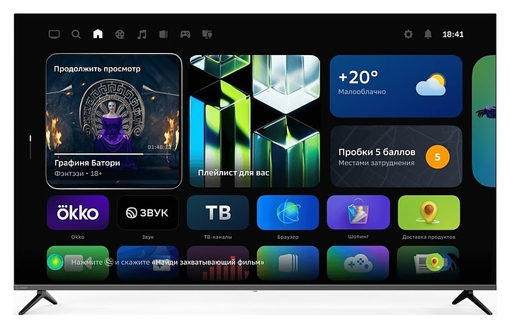Удобный доступ к популярным онлайн-кинотеатрам, включая Кинопоиск, Wink, Okko и Старт, приложениям, стриминговым сервисам, музыке, подкастам и другому контенту