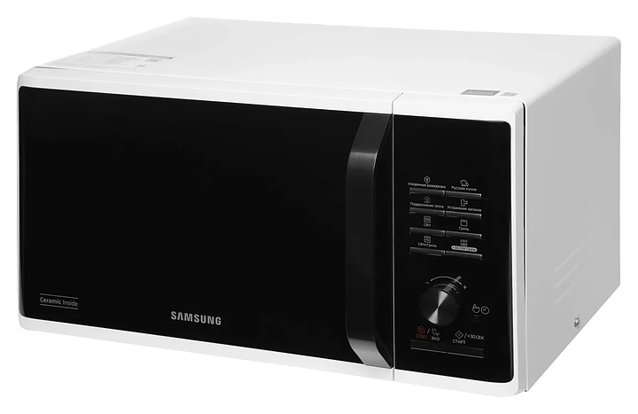Микроволновая печь Samsung MG23K3515AW/BW используется для разморозки, подогрева и приготовления широкого спектра блюд в домашних условиях. Модель оснащена ручкой, ТЭНом, часами и LED дисплеем. Режим ECO Mode снижает потребление энергии в режиме ожидания до минимального. Функция очистки от запахов позволяет легко и быстро удалить неприятные запахи из рабочей камеры и сохранить блюдо свежим и аппетитным. Внутреннее покрытие выполнено из биокерамики, которая отличается устойчивостью к царапинам и коррозии. В комплект поставки входит решетка для гриля. Особенности:
