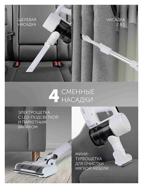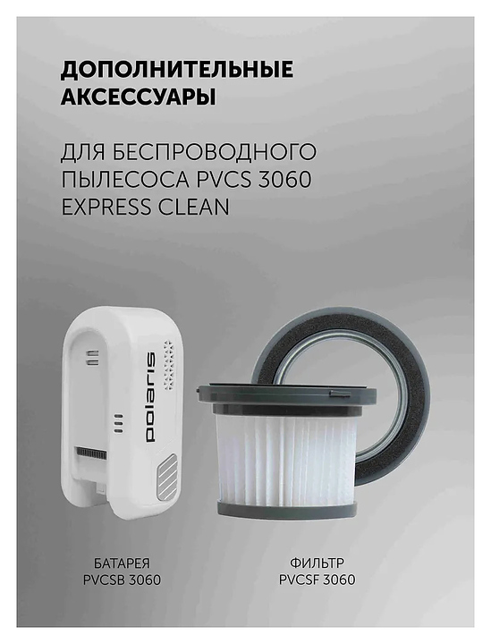 Беспроводной вертикальный пылесос Polaris PVCS 3060 Express Clean с турбощеткой и 3 дополнительными насадками эффективно очищает как сухие полы, так и ковры, идеально подходит семьям, ценящим гигиену и простоту, он справляется с пылью и остатками пищи, продлевая свежесть напольных покрытий. Модель оснащена вертикальной парковкой и регулировкой мощности. Корпус изготовлен из прочного пластика, ручка из металла. В комплект входит вертикальный пылесос, щелевая насадка, насадка 2в1, мини-турбощетка для мебели, зарядное устройство, электрическая щетка для пола, напольная подставка, щеточка для очистки валика, съемная батарея, труба, пылесборник Особенности: