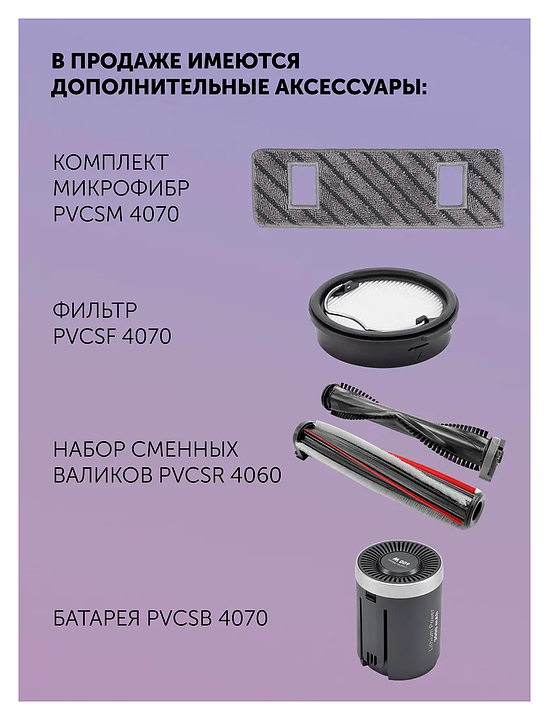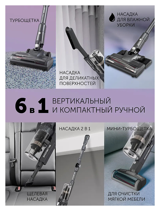 Беспроводной вертикальный пылесос Polaris PVCS 4070 Wi-Fi IQ HOME с турбощеткой и 5 дополнительными насадками эффективно очищает как сухие полы, так и ковры, идеально подходит семьям, ценящим гигиену и простоту, он справляется с пылью и остатками пищи, продлевая свежесть напольных покрытий. Модель оснащена вертикальной парковкой и регулировкой мощности. Корпус изготовлен из прочного пластика, ручка из металла. В комплект входит: пылесос, батарея, электрическая щетка для пола, щелевая насадка, насадка 2 в 1, мини турбощетка, гибкая труба, насадка для влажной уборки, инструкция по эксплуатации, напольная подставка-зарядный блок, труба, насадка для люстр и деликатных поверхностей. Особенности: