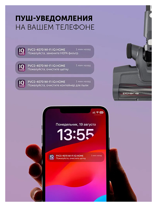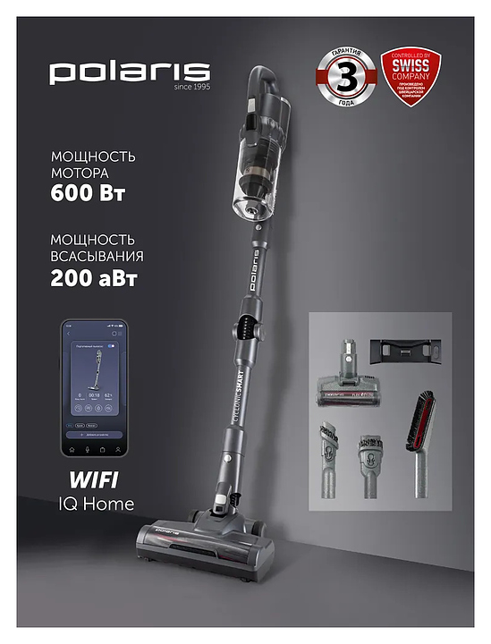 Пылесос вертикальный беспроводной Polaris PVCS 4070 Wi-Fi IQ HOME графитовый