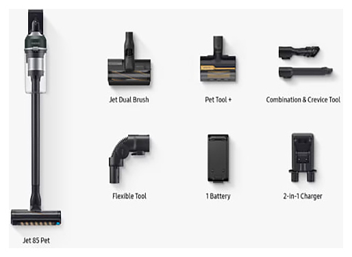 Беспроводной пылесос Samsung VS20C8522TN/EV предназначен для обработки полов, ковров и мягкой мебели в частных домах, квартирах, отелях и офисах. Модель оснащена цифровым инверторным мотором HexaJet Motor и ЖК-дисплеем. Аэродинамическая система движения воздуха оптимизирует воздушный поток, мультициклонная система фильтрации воздуха Jet Cyclone задерживает мельчайшие частицы пыли. Облегченная конструкция обеспечивает простую уборку. Сменный аккумулятор повышенной емкости гарантирует достаточное количество времени. Комплектация: