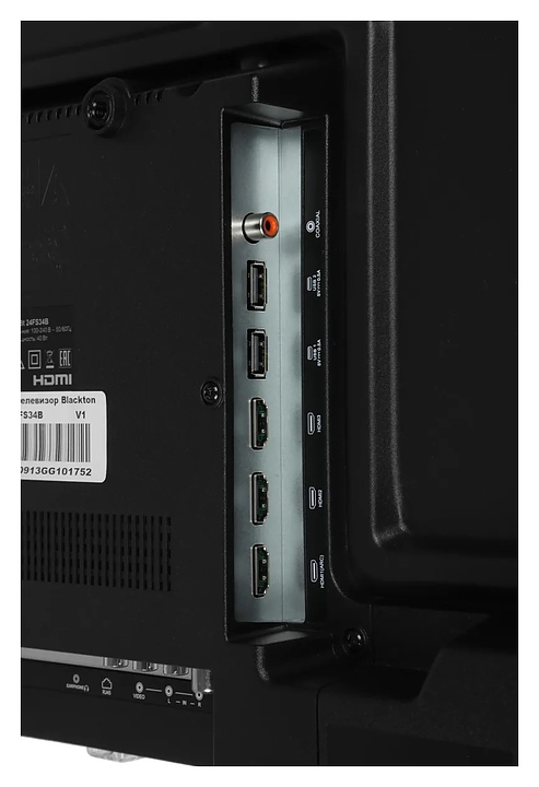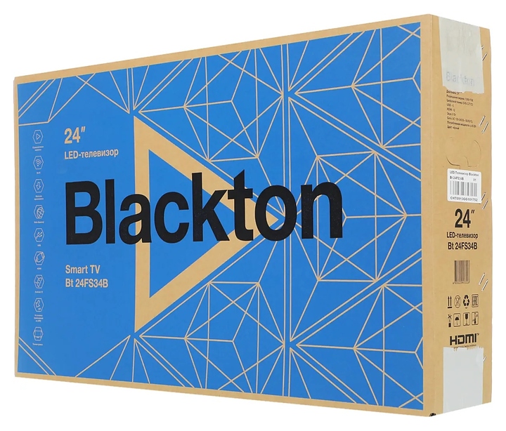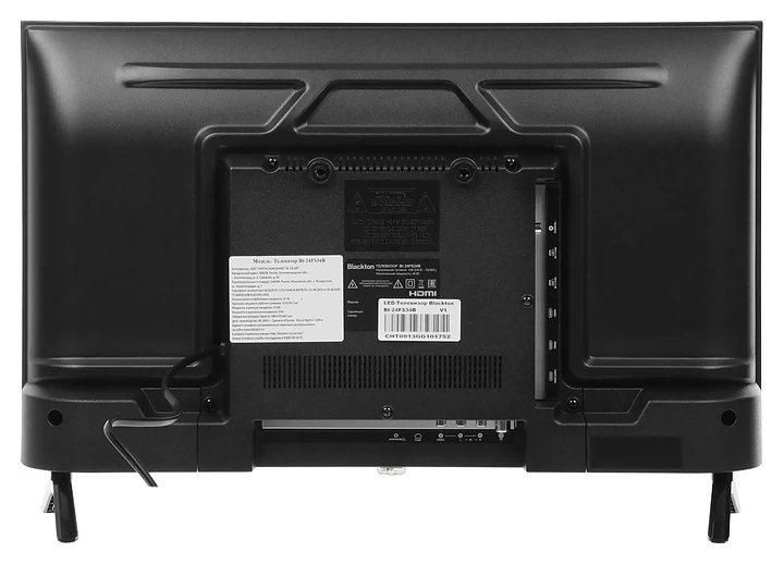 Телевизор Blackton Bt 24FS34B предназначен для приема и воспроизведения видео и аудио контента с различных ресурсов таких как телевещание, Интернет, дополнительное подключаемое оборудование и физические носители в домашних условиях, гостиницах, офисах, холлах и кабинетах различных учреждений. Прибор оснащен плоским широкоформатным монитором, акустической стереосистемой с 2 встроенными динамиками, встроенным блоком питания, кабелем питания с вилкой и основным выключателем, пульт – кнопочной клавиатурой. Кожух прибора выполнен из ударопрочного полимера с матовой поверхностью черного цвета, нижняя рамка с поверхностью серого оттенка, подставка – из пластика с поверхностью черного цвета, корпус пульта – из черного пластика.