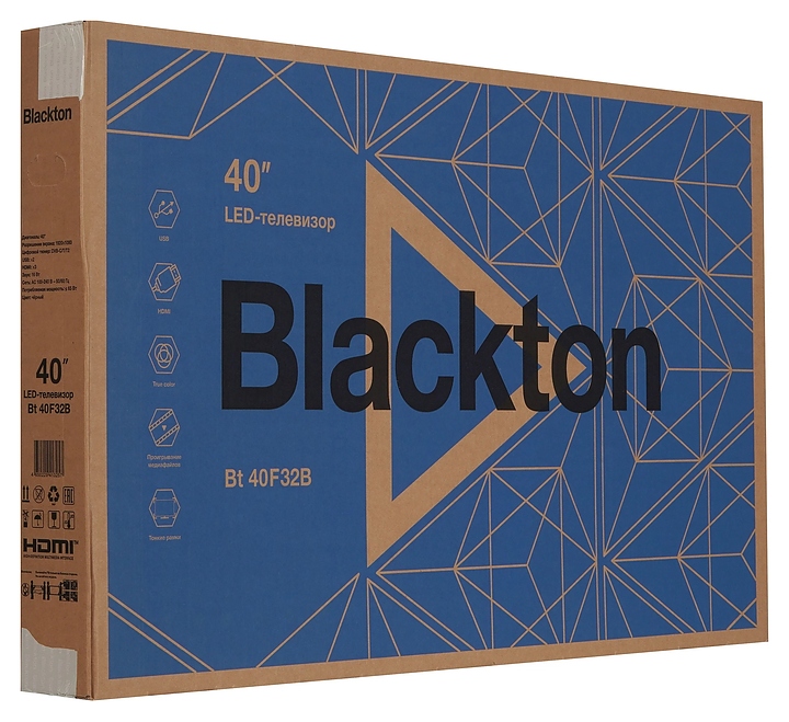 Телевизор Blackton Bt 40F32B предназначен для приема и воспроизведения видео и аудио контента с различных ресурсов таких как телевещание, дополнительное подключаемое оборудование и физические носители в домашних условиях, гостиницах, офисах, холлах и кабинетах различных учреждений. Прибор оснащен плоским широкоформатным монитором, акустической стереосистемой с 2 встроенными динамиками, встроенным блоком питания, кабелем питания с вилкой и основным выключателем, пульт – кнопочной клавиатурой. Кожух прибора выполнен из ударопрочного полимера с матовой поверхностью черного цвета, рамка экрана и подставка – из пластика с поверхностью черного цвета, корпус пульта – из черного пластика.