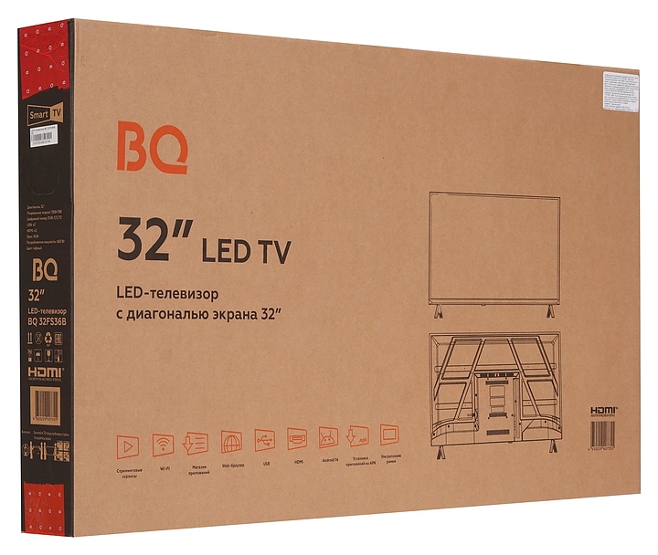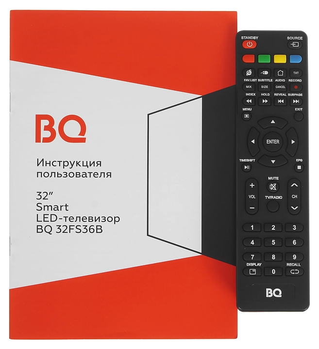 Телевизор BQ 32FS36B предназначен для приема и воспроизведения видео и аудио контента с различных ресурсов таких как телевещание, Интернет, дополнительное подключаемое оборудование и физические носители в домашних условиях, гостиницах, офисах, холлах и кабинетах различных учреждений. Прибор оснащен плоским широкоформатным монитором, акустической стереосистемой с 2 встроенными динамиками, встроенным блоком питания, кабелем питания с вилкой и основным выключателем, пульт – кнопочной клавиатурой. Кожух прибора выполнен из ударопрочного полимера с матовой поверхностью черного цвета, рамка экрана и подставка – из пластика с поверхностью черного цвета, корпус пульта – из черного пластика.