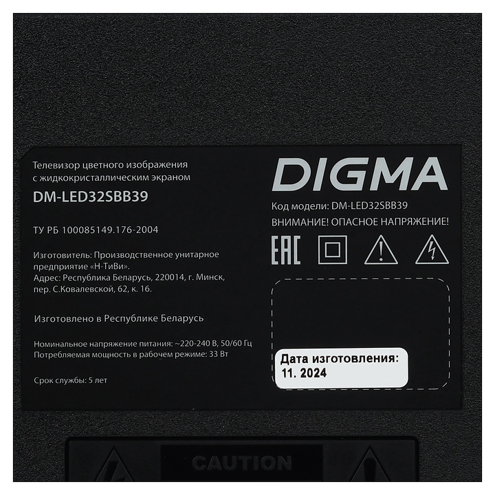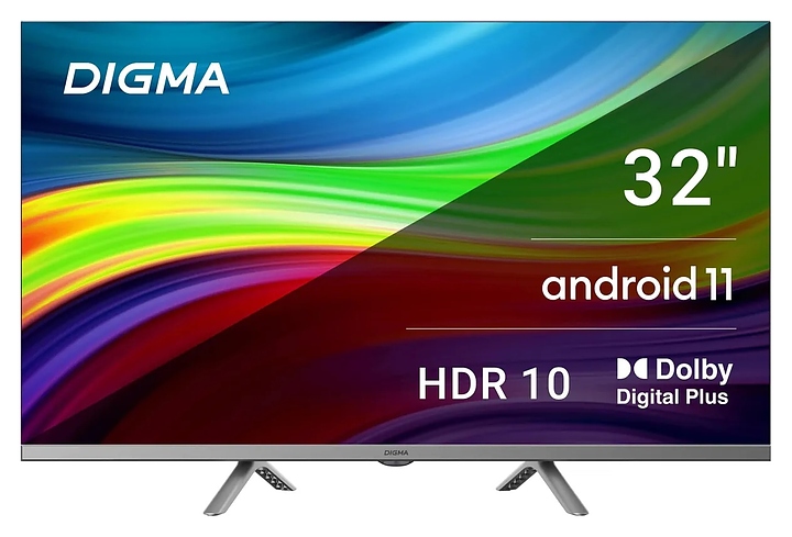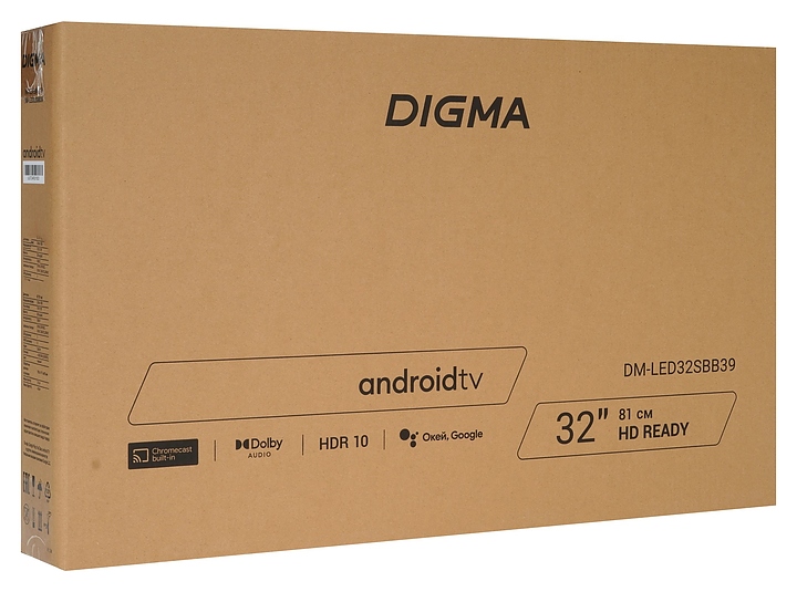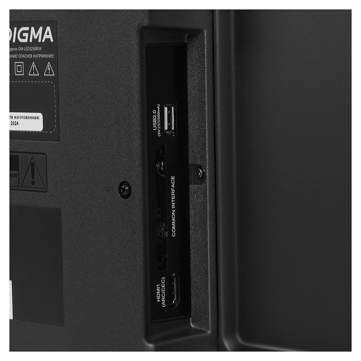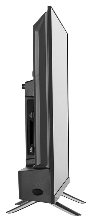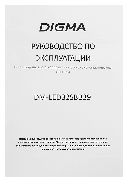 Телевизор Digma DM-LED32SBB39 предназначен для приема и воспроизведения видео и аудио контента с различных ресурсов таких как телевещание, Интернет, дополнительное подключаемое оборудование и физические носители в домашних условиях, гостиницах, офисах, холлах и кабинетах различных учреждений. Прибор оснащен плоским монитором, акустической стереосистемой с 2 встроенными динамиками, встроенным блоком питания и основным выключателем, пульт – кнопочной клавиатурой. Кожух прибора выполнен из ударопрочного полимера с матовой поверхностью черного цвета, рамка экрана с поверхностью серого оттенка, подставка с поверхностью темно-серебристого оттенка, корпус пульта – из черного пластика.