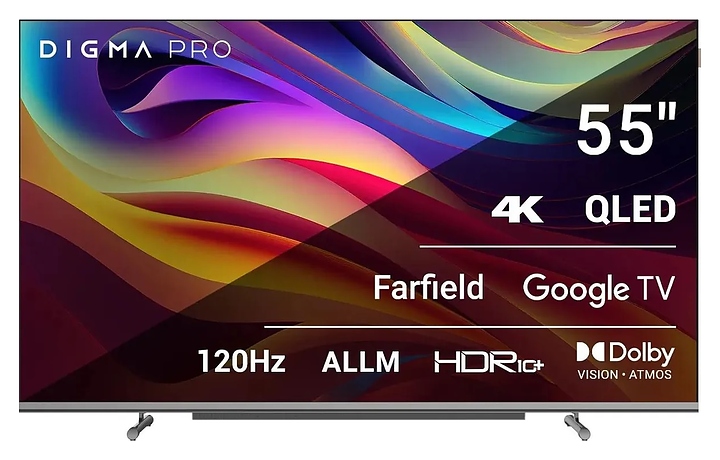 Телевизор Digma Pro 55L предназначен для приема и воспроизведения видео и аудио контента с различных ресурсов таких как телевещание, Интернет, дополнительное подключаемое оборудование и физические носители в домашних условиях, гостиницах, офисах, холлах и кабинетах различных учреждений. Прибор оснащен плоским монитором, акустической стереосистемой с 2 встроенными динамиками, встроенным блоком питания, кабелем питания с вилкой и клавишами управления, пульт – кнопочной клавиатурой. Кожух прибора выполнен из ударопрочного полимера с матовой поверхностью черного цвета, рамка экрана и подставка с поверхностью серебристого оттенка, корпус пульта – из пластика в комбинации черного и серебристого тонов.