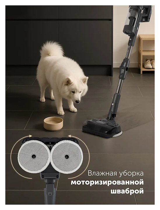 Беспроводной вертикальный пылесос Polaris PVCS 6020 Cyclonic Way PRO Wi-Fi IQ Home с пылесборником на 3 л эффективно очищает как сухие полы, так и ковры, идеально подходит семьям, ценящим гигиену и простоту, он справляется с пылью и остатками пищи, продлевая свежесть напольных покрытий. Модель оснащена вертикальной парковкой и регулировкой мощности. Корпус изготовлен из прочного пластика, составная ручка из металла. В комплект входит пылесос (основной корпус), съемная аккумуляторная Li-ion батарея, Особенности: