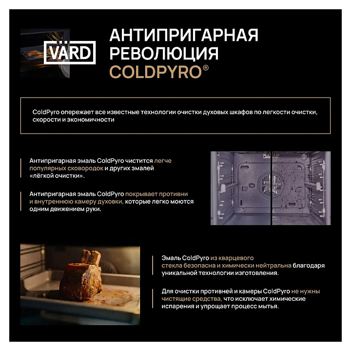 Духовой шкаф VARD VON444B используется в квартирах и частных домах для приготовления широкого спектра блюд из овощей, мяса, птицы и рыбы, а также выпечки десертов и хлебобулочных изделий. Модель оснащена сенсорным управлением с утапливаемыми регуляторами, цифровым дисплеем и термощупом. Держатели для противней EasyFit состоят из 2 направлющих разной длины и образуют ступень для облегчения установки противня. Технология SoftClosing гарантирует плавное закрытие двери. Горячий воздух 3D помогает готовить несколько блюд параллельно на разных уровнях. Панель управления выполнена из стекла, дверь - из тройного стекла, внутренняя поверхность камеры покрыта антипригарной эмалью ColdPyro, которая отличается прочностью, долговечностью и легкой очисткой. В комплект поставки входят глубокий противень и решетка. Особенности: