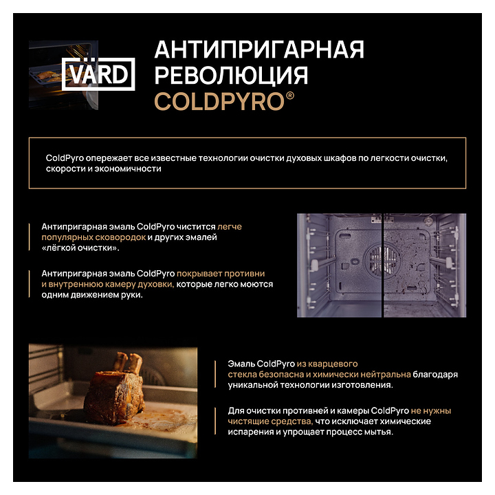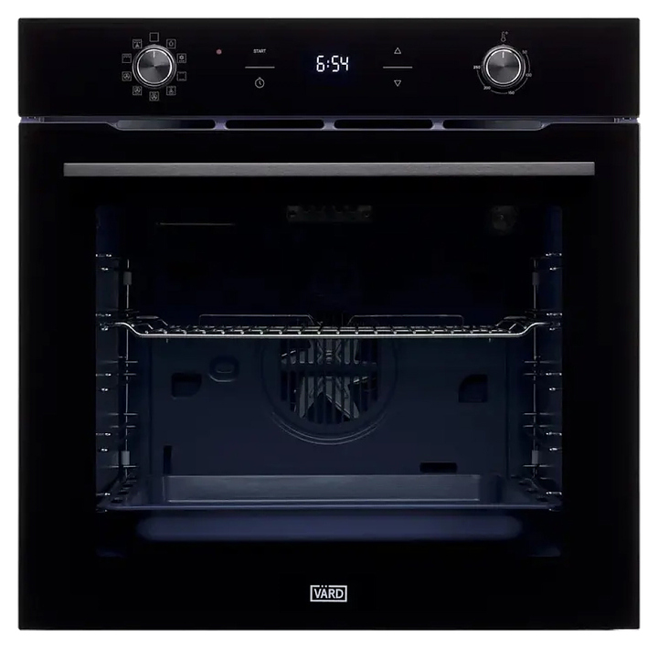 Духовой шкаф VARD VON441B используется в квартирах и частных домах для приготовления широкого спектра блюд из овощей, мяса, птицы и рыбы, а также выпечки десертов и хлебобулочных изделий. Модель оснащена сенсорным управлением с утапливаемыми регуляторами, галогеновой лампой освещения и цифровым дисплеем. Держатели для противней состоят из двух направлющих разной длины и образуют ступень для простой установки противня. Гриль с конвекцией и кольцевым нагревательным элементом создают сильный нагрев сверху и непрерывный поток горячего воздуха вокруг продукта, благодаря чему в духовом шкафу можно приготовить те же блюда, что и в аэрогриле с минимальным использованием масла. Горячий воздух 3D помогает готовить несколько блюд параллельно на разных уровнях. Дверь выполнена из тройного стекла, внутренняя поверхность камеры покрыта антипригарной эмалью ColdPyro, которая отличается прочностью, долговечностью и легкой очисткой. В комплект поставки входят решетка и глубокий противень. Особенности: