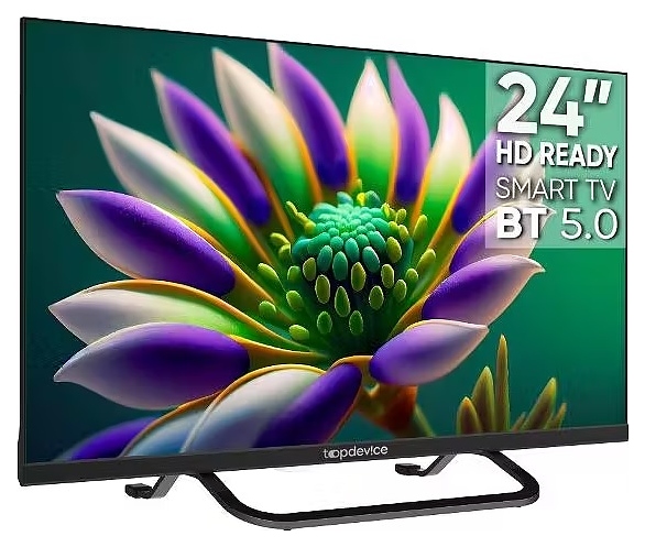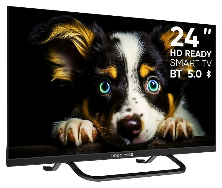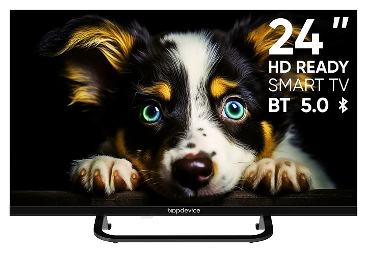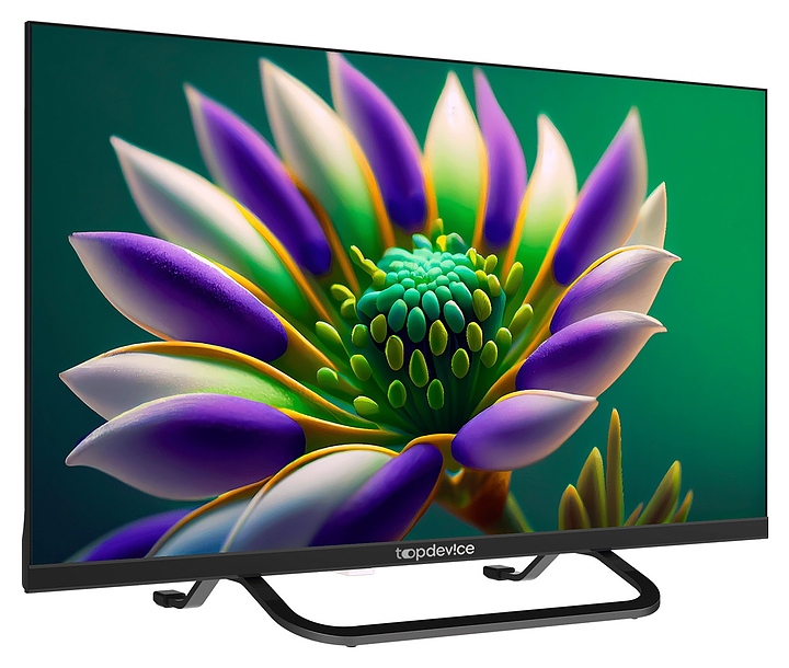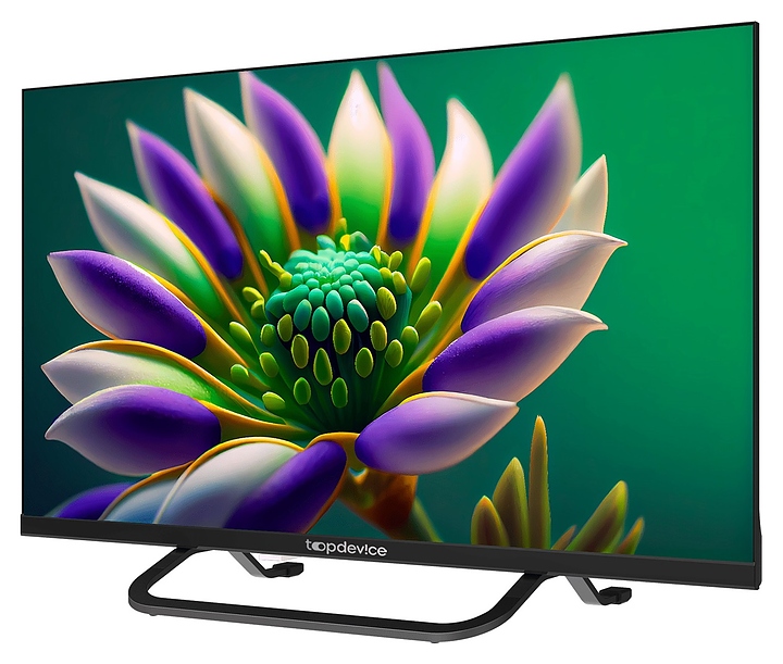 Телевизор Topdevice TDTV24CS04H_BK предназначен для приема и воспроизведения видео и аудио контента с различных ресурсов таких как телевещание, Интернет, дополнительное подключаемое оборудование и физические носители в домашних условиях, гостиницах, офисах, холлах и кабинетах различных учреждений. Прибор оснащен плоским широкоформатным монитором, акустической стереосистемой с 2 встроенными динамиками, встроенным блоком питания и основным выключателем, пульт – кнопочной клавиатурой. Кожух прибора выполнен из ударопрочного полимера (HIPS) с матовой поверхностью черного цвета, рамка экрана и подставка с поверхностью черного цвета, корпус пульта – из черного пластика.