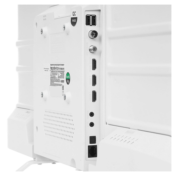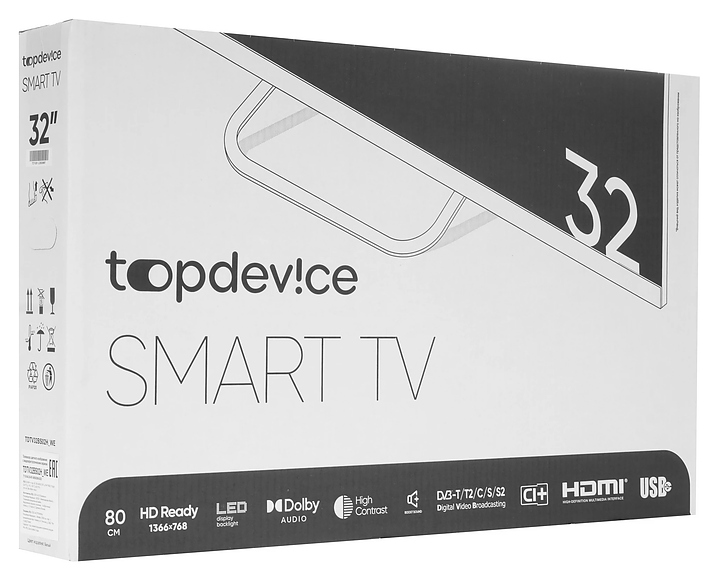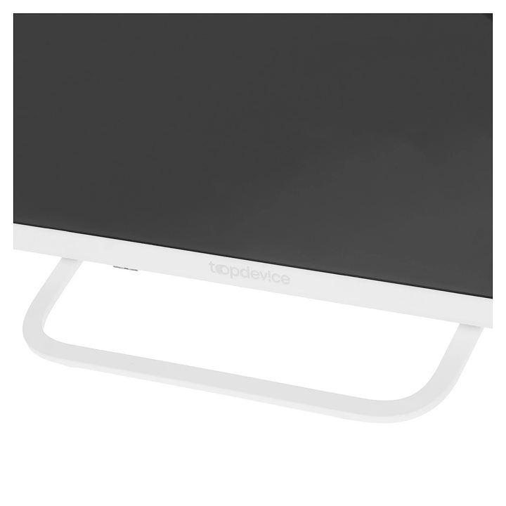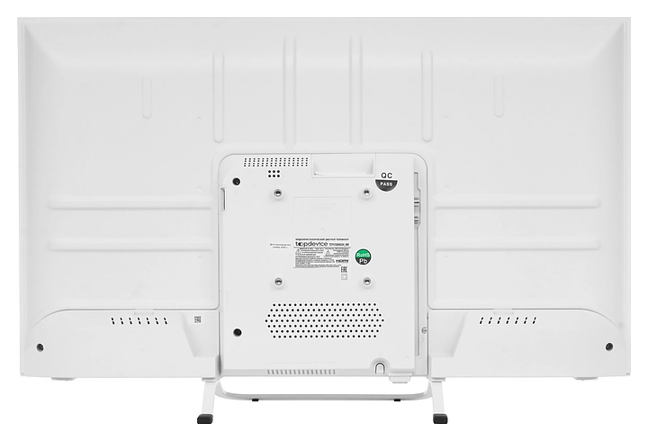 Телевизор Topdevice TDTV32BS02H_WE предназначен для приема и воспроизведения видео и аудио контента с различных ресурсов таких как телевещание, Интернет, дополнительное подключаемое оборудование и физические носители в домашних условиях, гостиницах, офисах, холлах и кабинетах различных учреждений. Прибор оснащен плоским широкоформатным монитором, акустической стереосистемой с 2 встроенными динамиками, встроенным блоком питания и основным выключателем, пульт – кнопочной клавиатурой. Кожух прибора выполнен из ударопрочного полимера (HIPS) с матовой поверхностью белого цвета, рамка экрана и подставка с поверхностью белого цвета, корпус пульта – из белого пластика.