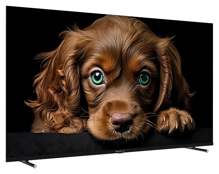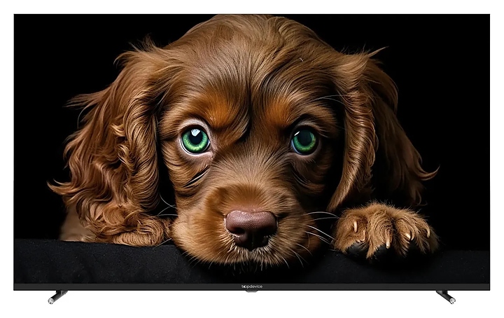 Телевизор Topdevice TDTV55CQ09U_BK предназначен для приема и воспроизведения видео и аудио контента с различных ресурсов таких как телевещание, Интернет, дополнительное подключаемое оборудование и физические носители в домашних условиях, гостиницах, офисах, холлах и кабинетах различных учреждений. Прибор оснащен плоским широкоформатным монитором, акустической стереосистемой с 2 встроенными динамиками, встроенным блоком питания и основным выключателем, пульт – кнопочной клавиатурой. Кожух прибора выполнен из ударопрочного полимера с матовой поверхностью черного цвета, рамка экрана и подставка с поверхностью черного цвета, корпус пульта – из черного пластика.