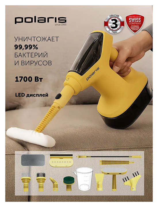 Пароочиститель компактный Polaris PSC 1702C черный, желтый