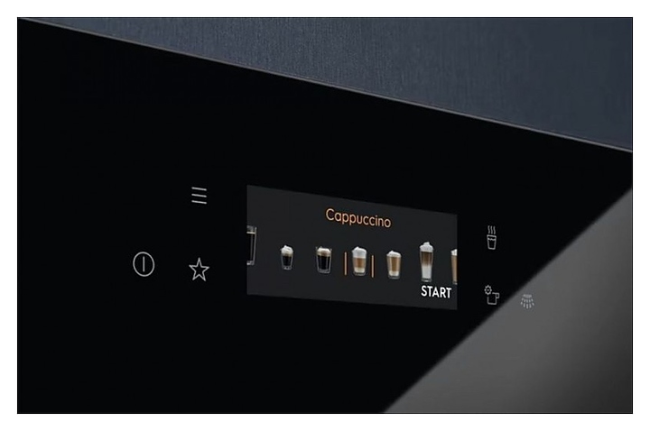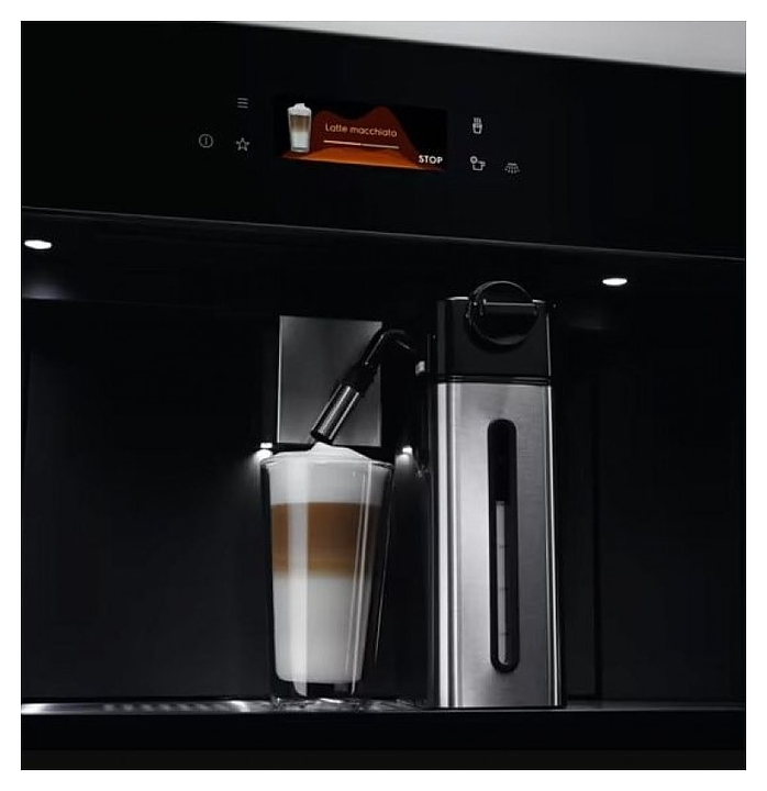 Встраиваемая автоматическая кофемашина Electrolux KBC85Z предназначена для приготовления кофе и напитков на его основе в домашних условиях. Модель оснащена встроенной кофемолкой с коническими жерновами, высокоэффективным насосом, системой нагрева с термоблоком и парогенератором, кабелем питания, расположенным на верхней фронтальной панели полноцветным сенсорным TFT-дисплеем управления и индикации с символьными, графическими, цифровыми и текстовыми сегментами. Фронтальные панели выполнены из стали с покрытием черного цвета.