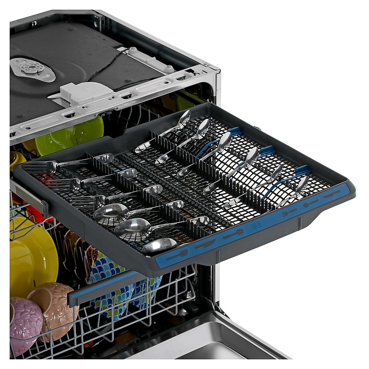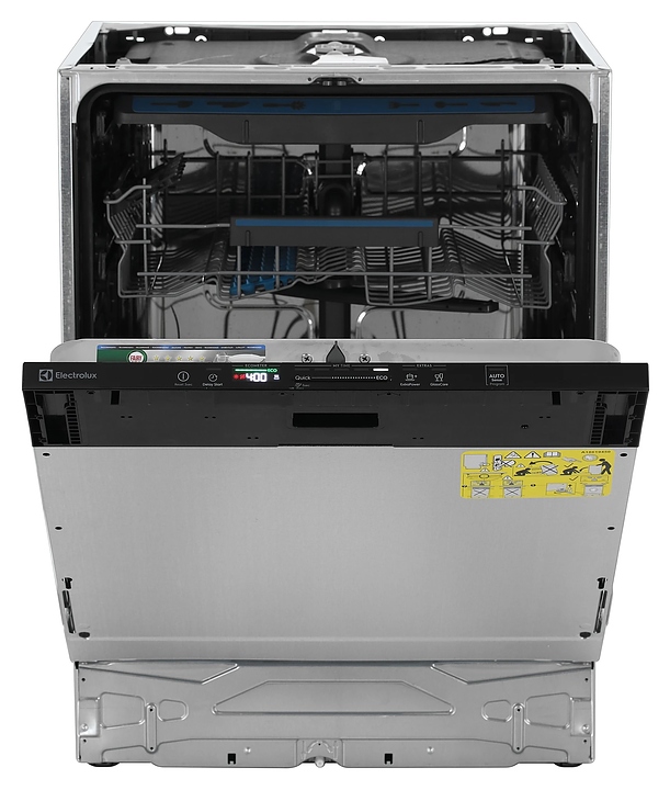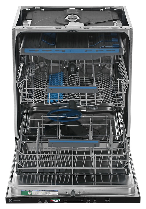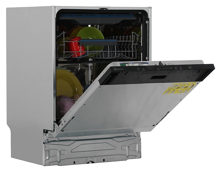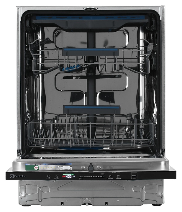 Встраиваемая посудомоечная машина Electrolux EEM48321L предназначена для гигиенической обработки и последующей сушки различной посуды в гостиничных комплексах и домашних условиях. Модель оснащена камерой с откидной дверью с интегрированной рукояткой, верхним и нижним моечными рукавами, дозаторами моющих и ополаскивающих средств, устройством умягчения воды, кабелем питания с вилкой, расположенной на верхнем торце двери панелью управления с сенсорными функциональными клавишами, светодиодными индикаторами и дисплеем с цифровыми и символьными сегментами индикации. Внутренняя облицовка камеры и двери выполнена из высококачественной нержавеющей стали, корпус – из металла с антикоррозийным покрытием, панель управления – из полимера черного цвета.
