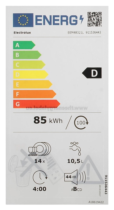 • Годовое энергопотребление из расчета 280 стандартных циклов ECO: 85 кВт⋅ч