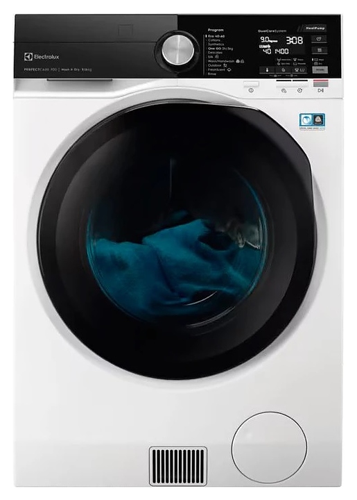 Стиральная машина Electrolux EW9WN249BE используется в домашних условиях, а также небольших прачечных для стирки, полоскания, отжима и сушки белья, одежды и тканей. Модель оснащена тепловым насосом, фронтальным загрузочным люком с левосторонней дверью со смотровым окном, съемным контейнером для моющих средств, кабелем питания с вилкой, электромеханической панелью управления с поворотным переключателем программ, сенсорными функциональными клавишами, светодиодными индикаторами и жидкокристаллическим дисплеем с белой подсветкой индикации. Корпус выполнен из металла с антикоррозийным покрытием белого цвета, дверь люка – из прозрачного стекла с широкой черной окантовкой, барабан и бак – из нержавеющей стали, верхняя фронтальная панель с глянцевой поверхностью черного цвета, переключатель с серебристой поверхностью.