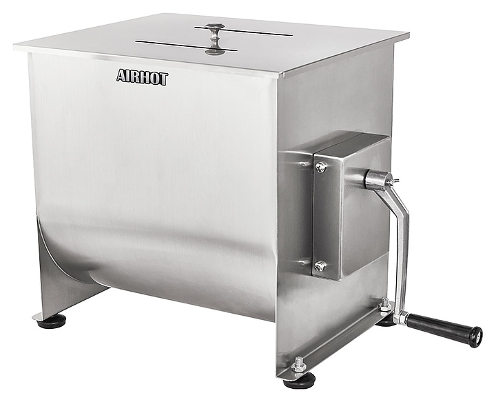 Фаршемешалка Airhot MM-20 используется на предприятиях общественного питания и торговли для равномерного перемешивания ингридиентов в процессе приготовления мясного и рыбного фарша, паштетов, салатов и различных начинок. Модель оснащена фиксированной дежой, горизонтальным месильным органом с Т-образными лопастями и боковыми скребками, ручным приводом и съемной крышкой. Корпус изготовлен из высококачественной нержавеющей стали. Особенности: