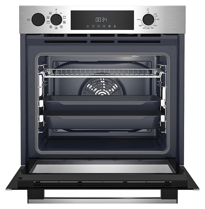 Духовой шкаф Grundig GEBD11300X используется в квартирах и частных домах для приготовления широкого спектра блюд из овощей, мяса, птицы и рыбы, а также выпечки десертов и хлебобулочных изделий. Модель оснащена LED-дисплеем, таймером, увеличенной зоной гриля и утапливаемыми переключателями. Технология HotAeroPro предотвращает подгорание краев и обеспечивает равномерное пропекание. Телескопические направляющие обеспечивают удобный доступ к блюдам. Функция Steam Assist позволяет готовить на пару. Детали выполнены из переработанного текстиля и рыболовных сетей, панель управления - из нержавеющей стали, внутренняя поверхность дверцы - из стекла. В комплект поставки входит решетка. Особенности: