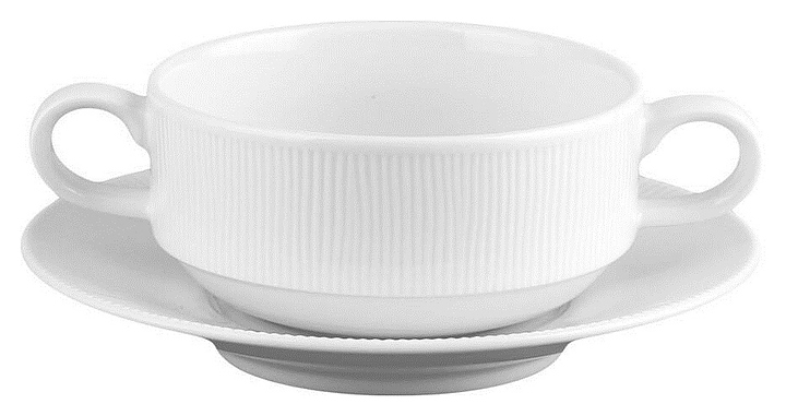 Бульонная пара Noble Neo Silk Stackable 306602А используется для подачи бульона на предприятиях общественного питания и в домашних условиях. Коллекция отличается сбалансированным сочетанием классических форм, элементов модерна и изящного декора в виде тонких текстурных линий на внешних поверхностях. Модель состоит из блюдца и чашки круглого сечения. Чашка оснащена плавно расширенным в основании прямым бортом и 2 дугообразными рукоятками. Изделия выполнены из высококачественного белого фарфора с глазурованной поверхностью. Особенности: