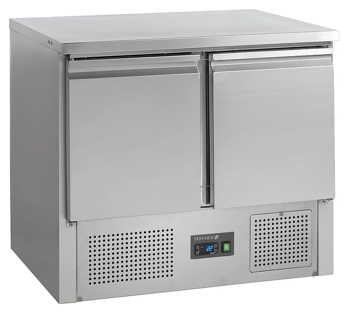 Холодильный стол TEFCOLD SA910 предназначен для обработки ингредиентов, используемых для приготовления салатов, охлаждения и кратковременного хранения продуктов на предприятиях общественного питания и торговли. Корпус и внутренняя обшивка выполнены из нержавеющей стали AISI 304. Особенности: