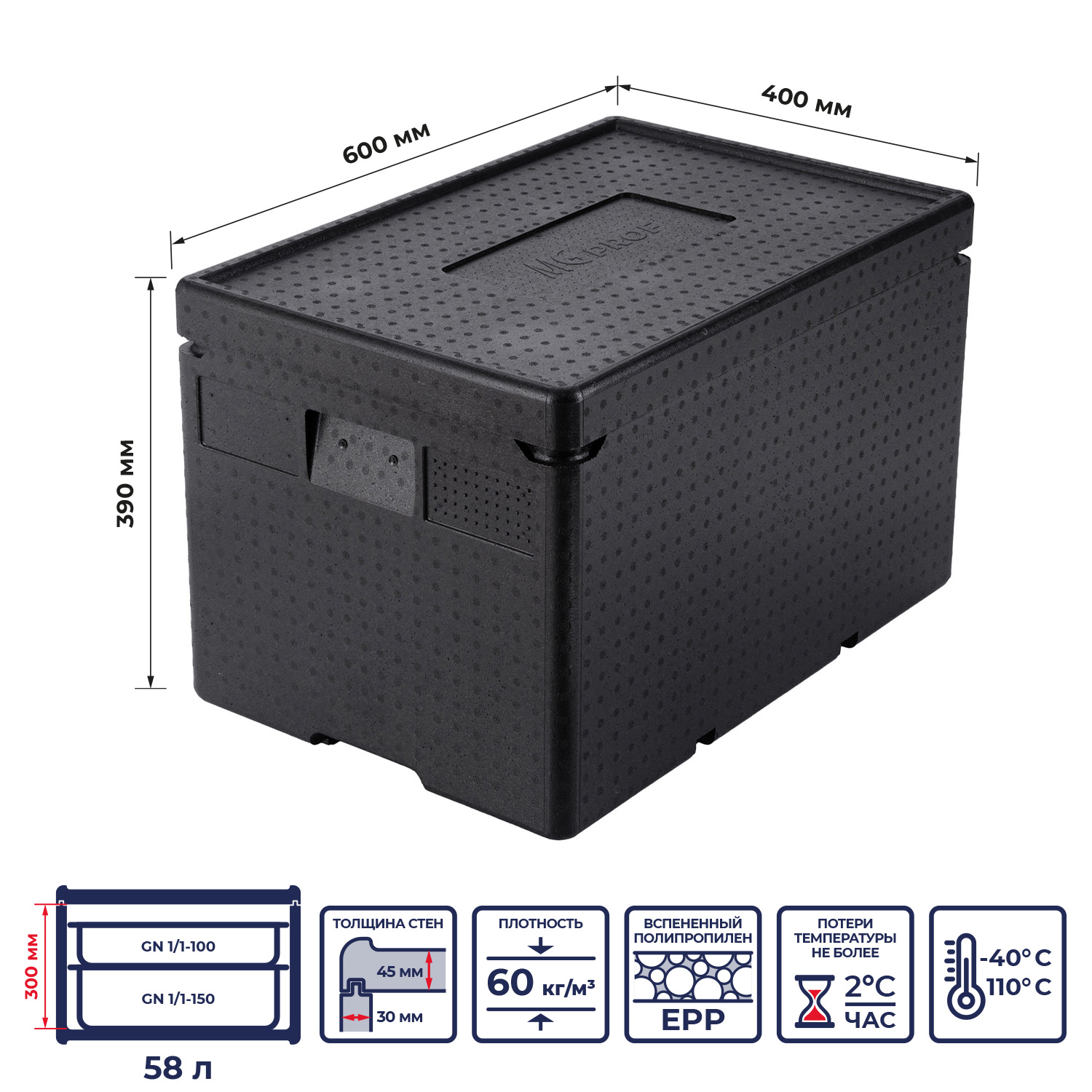 Термоконтейнер MGprof 77608 58 л 600х400х390 мм (полипропилен) черный