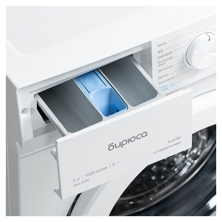 Стиральная машина Бирюса WM-SM510/08 используется в квартирах и частных домах для стирки, полоскания и отжима белья, ткани и одежды. Модель оснащена фронтальной загрузкой и LED дисплеем. Инверторный мотор обеспечивает тихую работу и экономит электроэнергию. Обработка паром освежает, очищает и разглаживает одежду, удаляет бактерии, аллергены, неприятные запахи и облегчает последующую глажку. Самоочистка барабана обеспечивает простой уход, блокировка от детей гарантирует безопасность. Особенности: