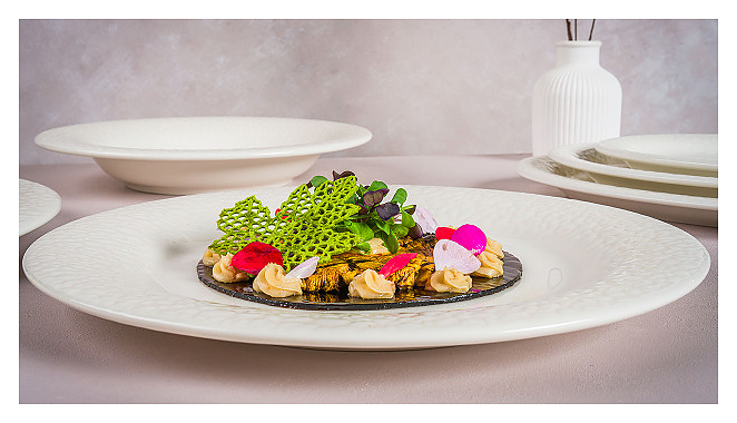 Тарелка Bonna Марлена 77436 Гурмэ используется для подачи различных блюд в ресторанах, кафе, на других предприятиях общественного питания и в домашних условиях. Изделие выполнено из высококачественного фарфора, покрытого глазурью, которая не боится ударов и других механических воздействий, на ней не образуются сколы, царапины и трещины. Особенности: