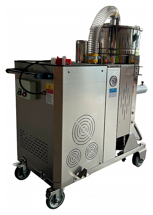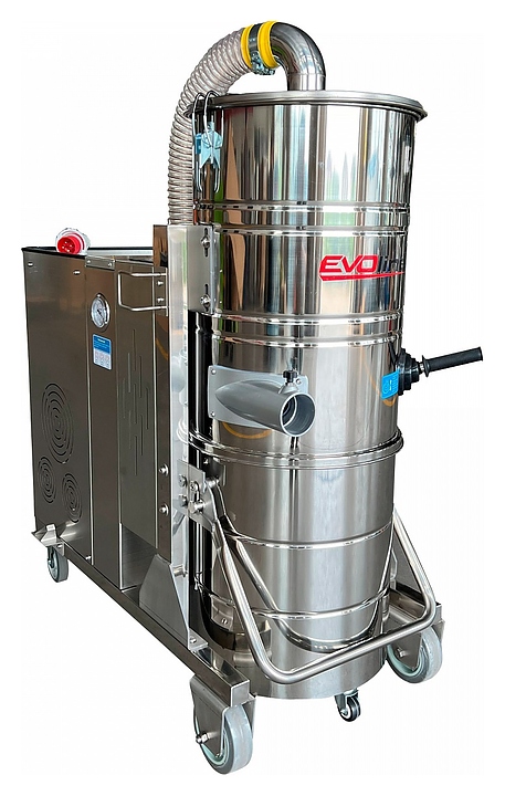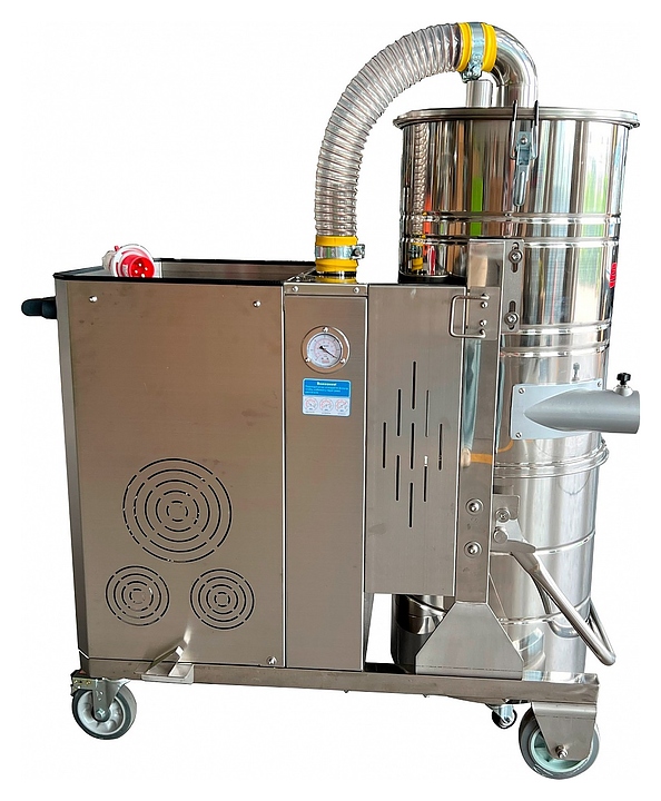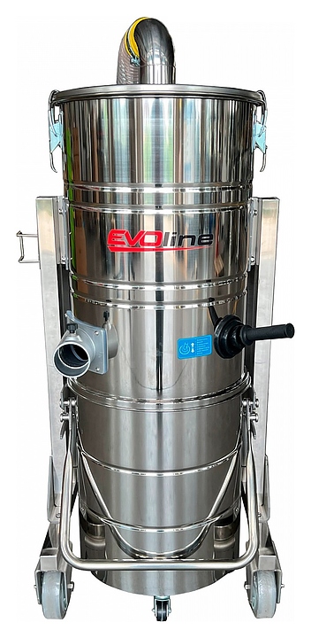 Индустриальный пылеводосос EVOline IVC 1100 3,0 kW предназначен для сухой и влажной уборки в ходе ремонтно-строительных или реставрационных работ, очистки автомобильных салонов, мягкой мебели и напольного покрытия на предприятиях пищевой, металлообрабатывающей и других направлений промышленности, складах, в мастерских и производственных цехах. Модель оснащена расположенным с тыльной стороны коробом с моторным отсеком, панелью управления с нажимными клавишами, нагнетательным шлангом, цилиндрическими барабаном и баком, каркасной рамой с шасси и ведущей рукояткой. Барабан, бак и шумоглушитель выполнены из нержавеющей стали с полированной поверхностью, рама и короб моторного отсека – из нержавеющей стали с матовой поверхностью, ведущие рукоятки корпуса и бака – из профиля круглого сечения из нержавеющей стали, нагнетательный шланг – из прозрачного поливинилхлорида (ПВХ) с армированием металлической проволокой. Комплектация: