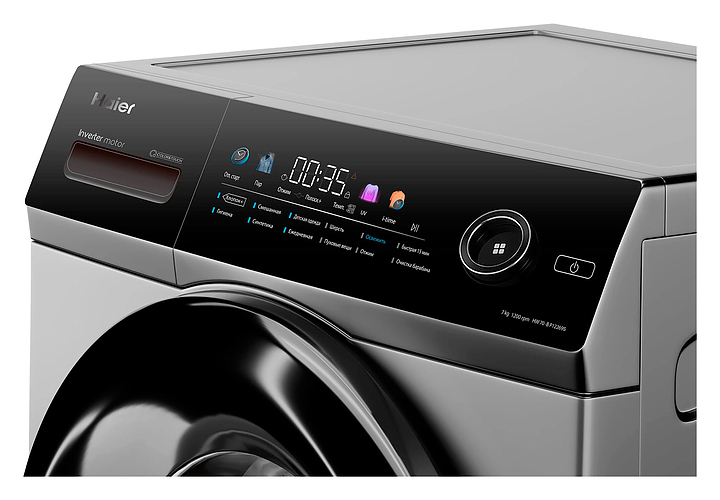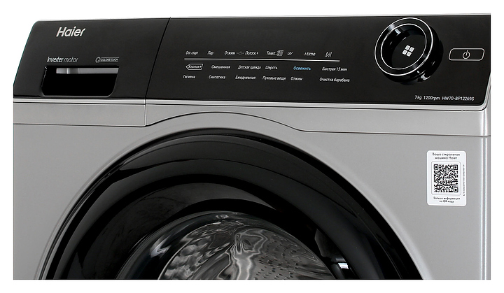 Стиральная машина Haier HW70-BP12269S используется в квартирах и частных домах для стирки, полоскания и отжима белья, ткани и одежды. Модель оснащена фронтальной загрузкой, сенсорным управлением и цветным LED дисплеем. Инверторный мотор обеспечивает тихую работу и экономит электроэнергию. Применение функции i-Time автоматически оптимизирует настройки времени для уже выбранной программы стирки, ультрафиолетовая обработка удаляет аллергены и вирусы. Манжета люка и лоток всегда остаются чистыми благодаря автоматическому промыванию направленными струями воды Smart Dual Spray. Защита от протечек Aquastop гарантирует безопасную эксплуатацию. Антибактериальная обработка ABT манжеты люка и кюветы обеспечивает предотвращение размножения бактерий и плесени. Особенности: