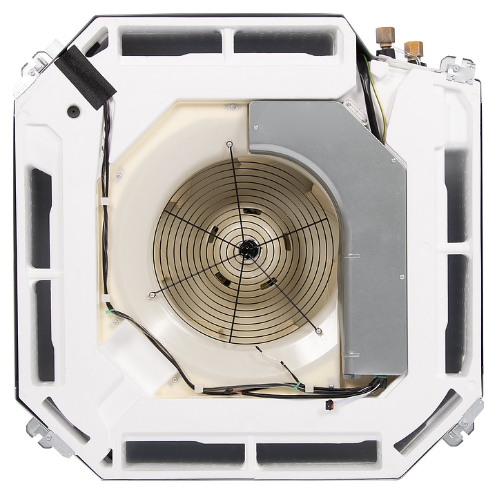 Кассетный фанкойл SHUFT SFR-850R V2 предназначен для кондиционирования административных, производственных и коммерческих помещений. Прибор оснащен электронным блоком управления и панелью индикации, лицевая панель – воздухозаборной решеткой и воздуховыпускными отверстиями с подвижными жалюзи, пульт – кнопочной клавиатурой и информативным жидкокристаллическим дисплеем. Корпус прибора выполнен из гальванически оцинкованной стали, лицевая панель – из ударопрочного пластика с поверхностью белого цвета, корпус пульта – из белого пластика, дренажный поддон – из полистирола в сочетании с техническим пластиком, трубки теплообменника – из меди, оребрение теплообменника – из алюминиевых ламелей с гидрофильной поверхностью, воздушный фильтр – из нейлонового волокна с жесткой рамой, шумоизоляция вентилятора – из губчатого материала.