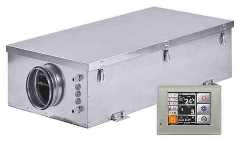 Приточная вентиляционная установка SHUFT ECO-SLIM 1100-9,0/3-А предназначена для подачи свежего воздуха комфортной температуры с улицы в коммерческие, административные, производственные, жилые или хозяйственные помещения. Модель оснащена трубчатым электрическим нагревателем, вентилятором и панелью автоматики, пульт – информативным цветным сенсорным дисплеем управления и индикации. Корпус прибора выполнен из панелей из оцинкованной листовой стали с изоляцией из базальтовой минеральной ваты, соединительные патрубки воздуховодов с эластичным уплотнением, корпус пульта – из белого пластика.