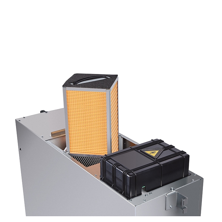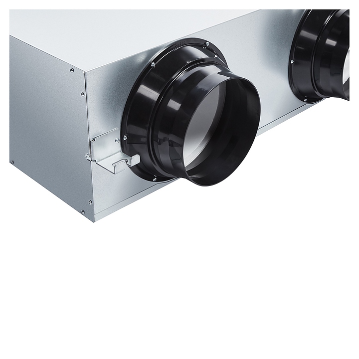 • Высокоэффективный пластинчатый (мембранный) рекуператор: нагрев приточного воздуха энергией вытяжного с эффективностью до 90% и возврат фильтрованной влаги в помещение