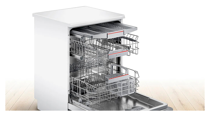 Посудомоечная машина Bosch SMS4ECW26M предназначена для гигиенической обработки и последующей сушки различной посуды в домашних условиях. Модель оснащена инверторным двигателем EcoSilence Drive и сенсорной панелью управления. Внутренний резервуар выполнен из нержавеющей стали. В комплект поставки входят 3 кассеты. Особенности: