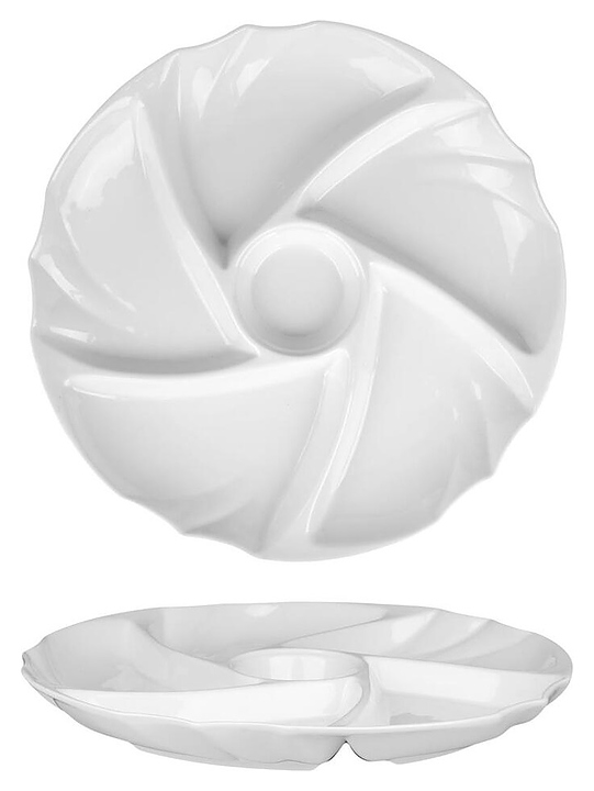 Менажница P.L. Proff Cuisine F1586-16 используется в барах, ресторанах, на других предприятиях общественного питания и в домашних условиях для одновременной подачи нескольких блюд. Модель круглой формы оснащена 6 секциями. Изделие выполнено из белого фарфора. Особенности: