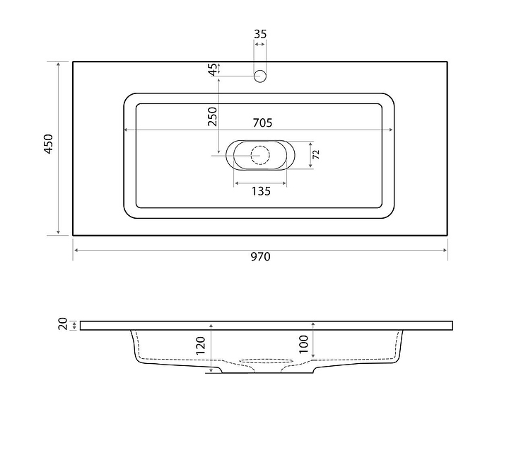 Раковина из литьевого мрамора Taliente CBled Modul 4627173210447 97х45х12 см белый