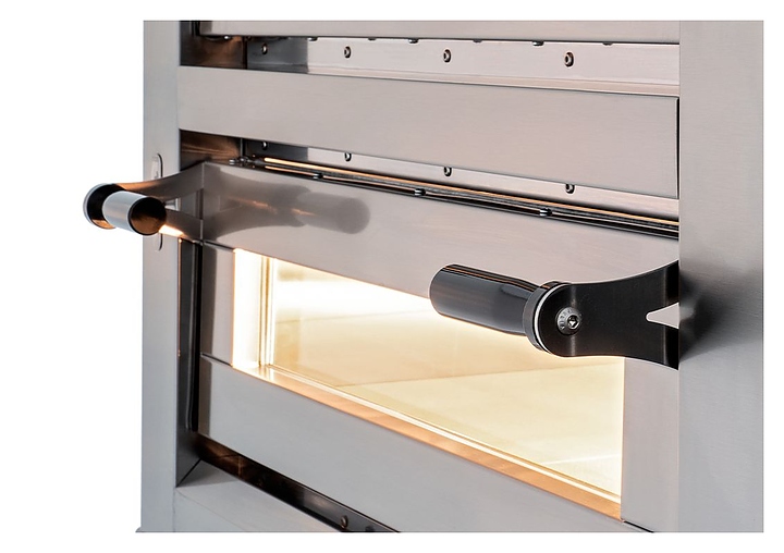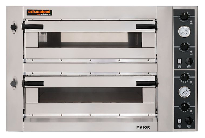Печь Prismafood MAIOR 44 используется на предприятиях общественного питания и торговли для выпекания пиццы и хлебобулочных изделий, требующих высокой температуры приготовления. Модель оснащена 2 камерами, механическим управлением, внутренним светодиодным освещением, рукояткой для выпускания пара и дверцами со смотровыми окнами. Внутренние нагревательные элементы установлены внутри огнеупорного камня. Печь позволяет раздельно настраивать две разные рабочие температуры. Корпус выполнен из нержавеющей стали, варочная поверхность - из огнеупорного камня, изоляция - из высушенной минеральной ваты, нагревательные элементы - армированные. Дополнительные характеристики:
