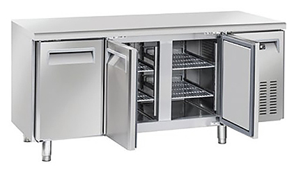 Холодильный стол Yukon QRL3100 предназначен для кратковременного хранения скоропортящихся продуктов и напитков, обработки ингредиентов для приготовления блюд и раскатки теста на предприятиях общественного питания и торговли. Модель оснащена встроенным холодильным агрегатом справа, цифровым термостатом, 3 самозакрывающимися глухими дверьми и регулируемыми полками. Закругленные внутренние края обеспечивают легкую очистку. Корпус выполнен из нержавеющей стали. Особенности: