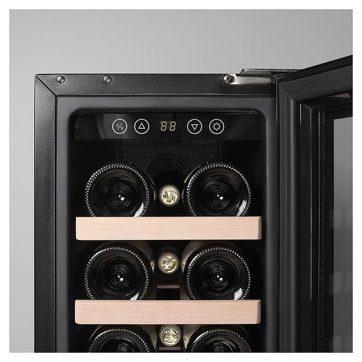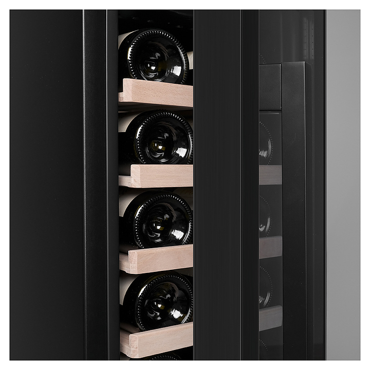 Винный шкаф MEYVEL MV19BIG-KBT1 предназначен для демонстрации, хранения и создания оптимальных условий для сохранения всех вкусовых свойств вина в бутылках на предприятиях общественного питания, торговли, в барах, ресторанах, специализированных магазинах, частных домах или квартирах. Модель оснащена сенсорной панелью управления, электронным термостатом и внутренней светодиодной подсветкой. Корпус выполнен из окрашенной в черный цвет стали, дверь с тонкой металлической ручкой - из стекла с УФ защитой с черной рамкой, выдвижные полки - из массива бука. В комплект поставки входят петли для перенавешивания двери. Особенности: